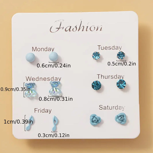 6-Pair Elegant Cute Fashion Stud Earrings Set for Women